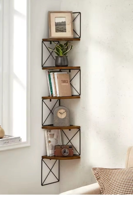 Dieses moderne Eckregal mit charakteristischem Zickzack-Design nutzt Raumecken optimal und bietet fünf großzügige Ebenen für Bücher, Dekorationsgegenstände und persönliche Gegenstände. Die innovative Geometrie schafft visuelles Interesse, während die stabile Konstruktion zuverlässigen Halt gewährleistet. Ideal für Schlafzimmer, Arbeitszimmer, Wohnzimmer oder Badezimmer – dieses Regal kombiniert Funktionalität mit zeitgenössischem Design und maximiert den verfügbaren Platz in jeder Ecke.
